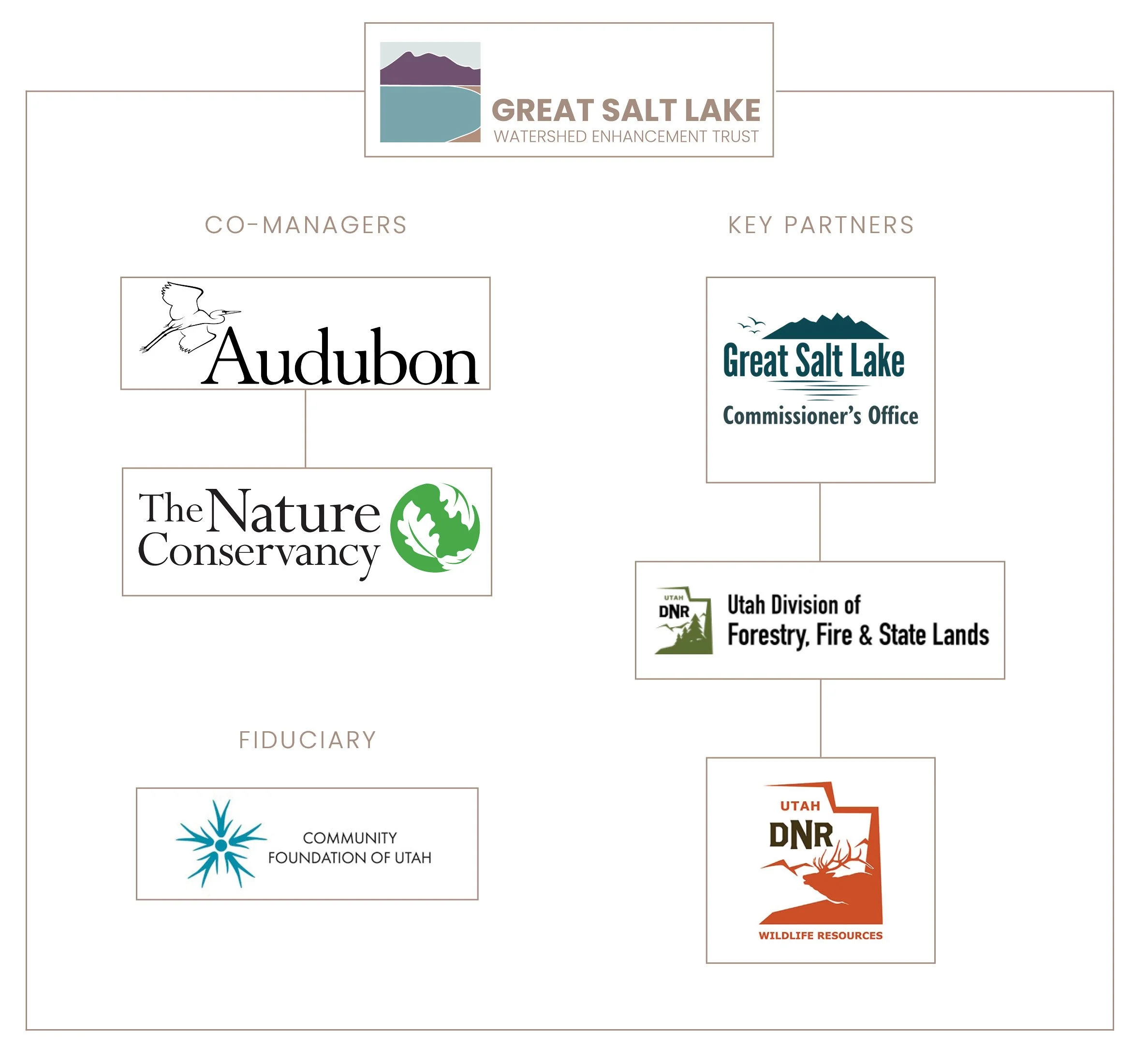 Guided by the leadership and experience of the National Audubon Society and The Nature Conservancy, the Great Salt Lake Watershed Enhancement Trust was established and funded by the State of Utah as a strategy to help address the water challenges facing Great Salt Lake and its wetlands, slowing the rate of decline as we work in collaboration to change Great Salt Lake’s trajectory and preserve this vital ecosystem.